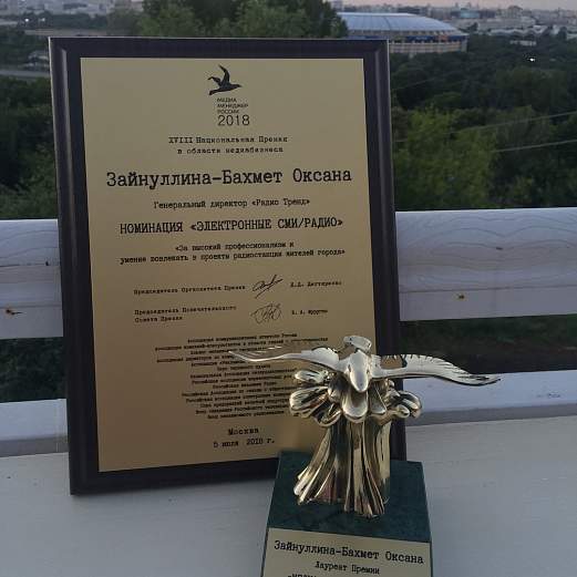 Руководитель первой танцевальной радиостанции России стала «номером 1» в номинации «Электронные СМИ», в категории «Региональные радиостанции». Конкурентами Оксаны Зайнуллиной-Бахмет были руководители федеральных и региональных радиостанций, издательских домов, рекламных и PR-агентств, топ-менеджмент крупнейших компаний, представители артистического и телевизионного бомонда. Но компетентное жюри сделало свой единственной верный выбор и присудило первое место именно ей.